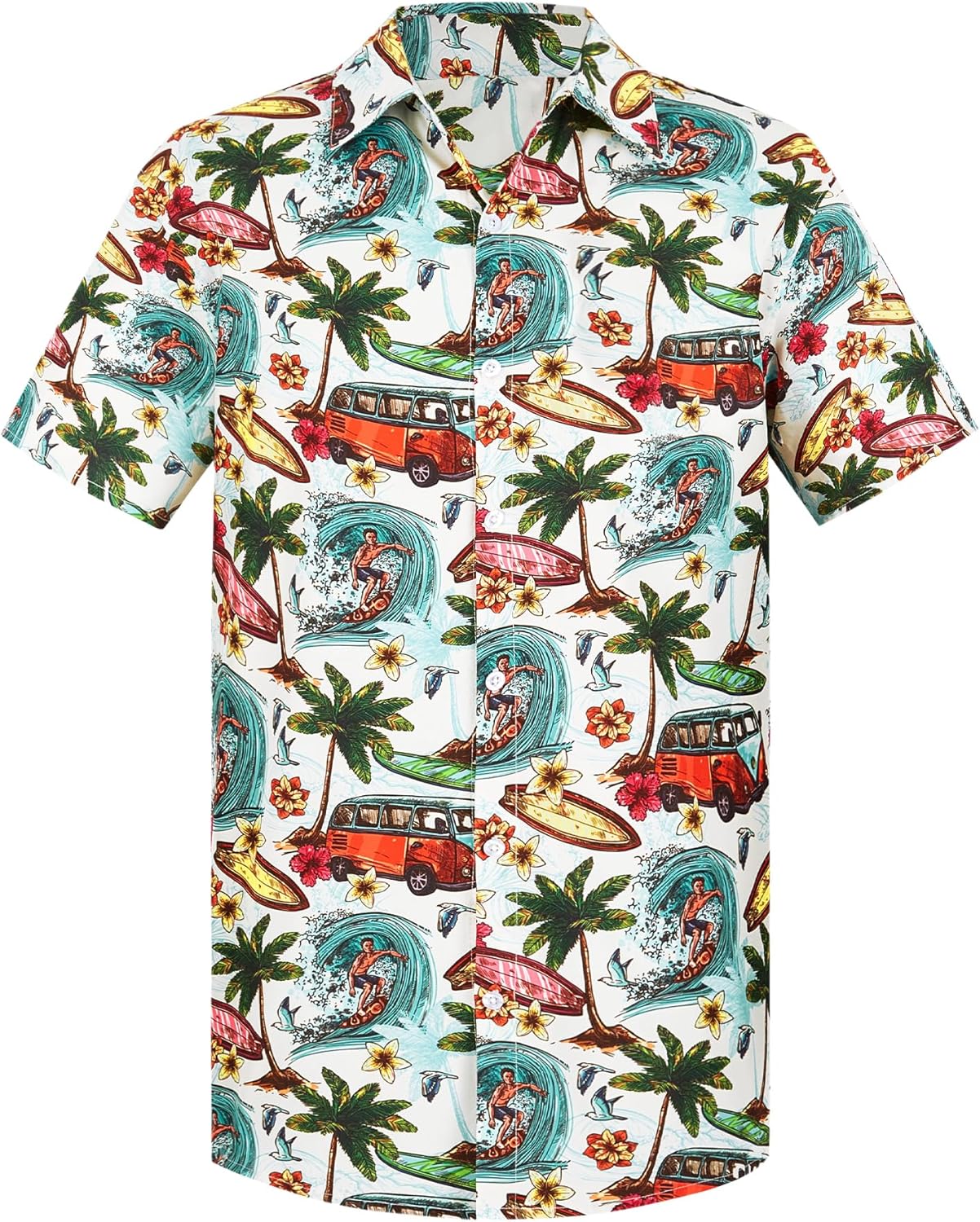 Yoimira Hawaiian Shirts for Men, Print Mens Casual Short Sleeve Button Down Shirts Floral Aloha Beach Shirt