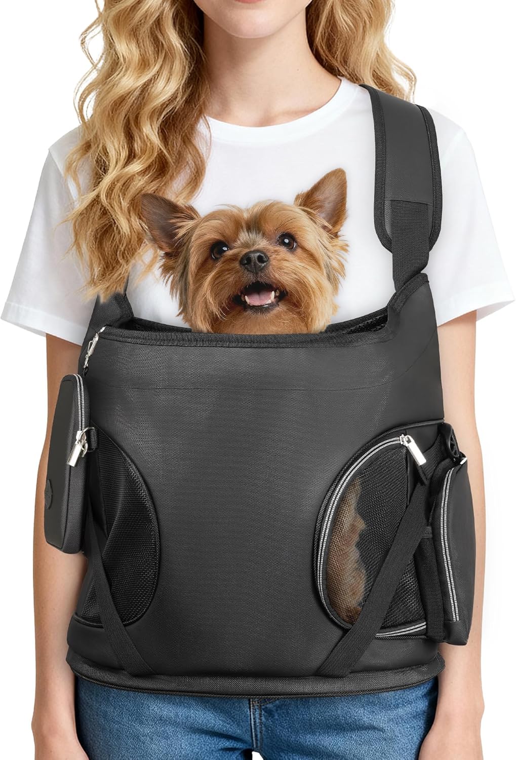 YUDODO Dog Front Backpack Carrier, Soft Breathable Pet Front Carrier with Adjustable Straps, Multi-Pocket Design, for Small Dogs & Cats up to 12 lbs (with Detachable Sling Pouch – 1 Pocket)